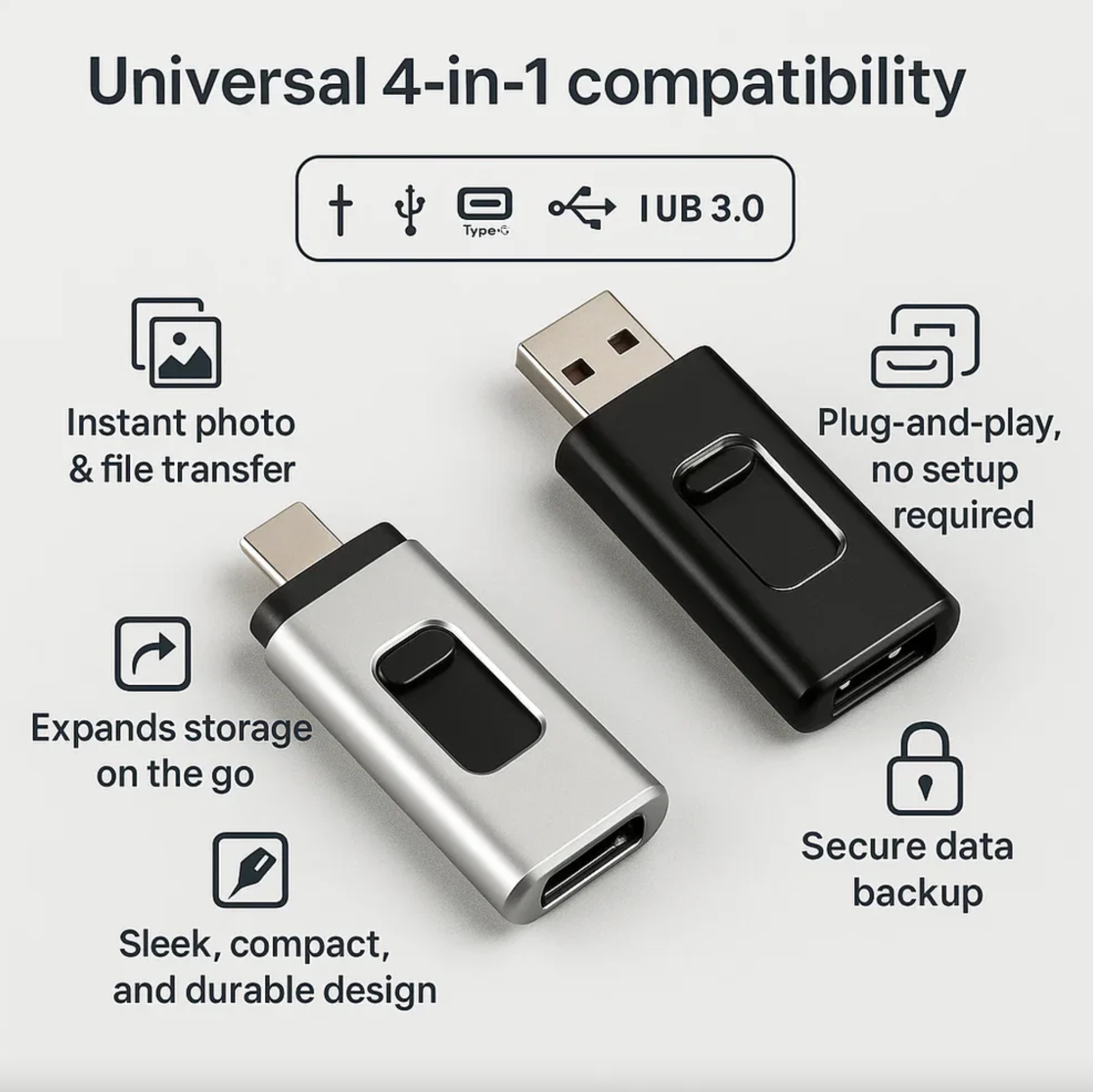Running out of space on your phone or laptop? The 2TB Smartphone Memory USB gives you instant extra storage for photos, videos, and files. Compact, portable, and universally compatible—it’s your pocket-sized backup solution.
