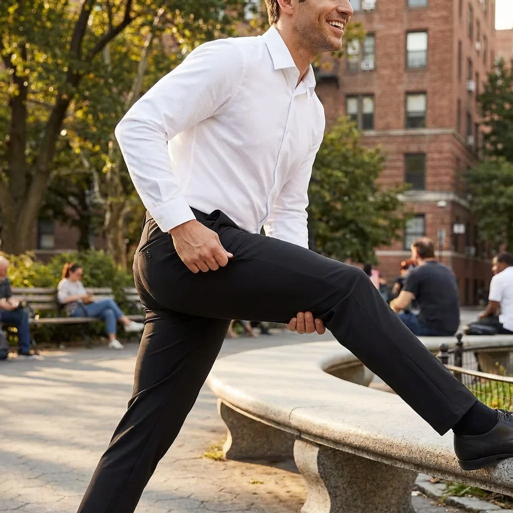 Slip on our stretch dress pants and enjoy sweat-like comfort while maintaining sharp professional appearance. The stretch moves with every gesture, keeping you comfortable from morning meetings to evening events.