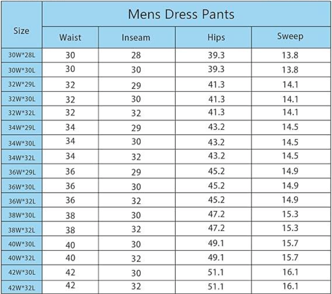 The Stretchy Dress Pants Size Chart