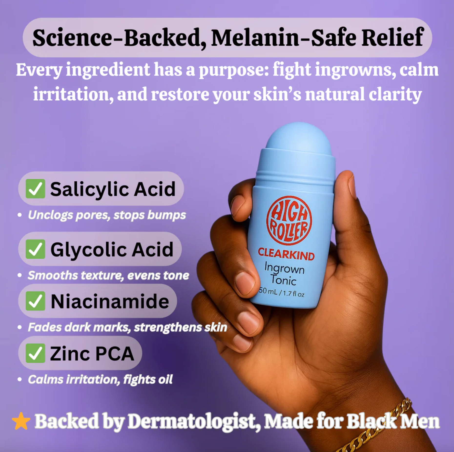 Packed with dermatologist-approved ingredients that calm, clear, and protect — made for melanin-rich, sensitive skin that’s tired of ingrown hairs and irritation