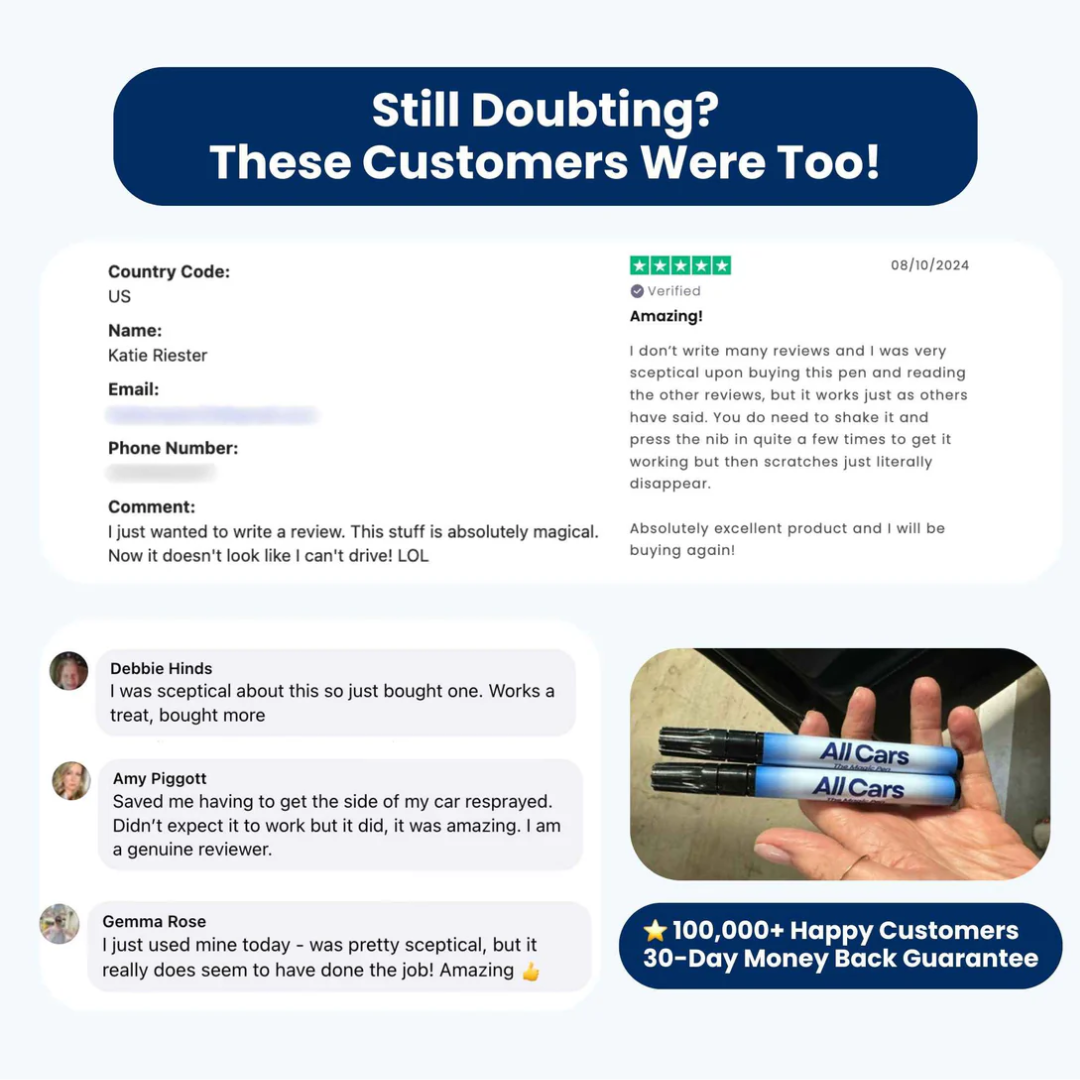 With just a single swipe, the Magic Pen erases light to moderate scratches instantly — without sanding, repainting, or expensive tools. It’s the same nano-polymer formula used in professional detail shops, engineered to blend into your car’s original paint and seal the surface permanently.