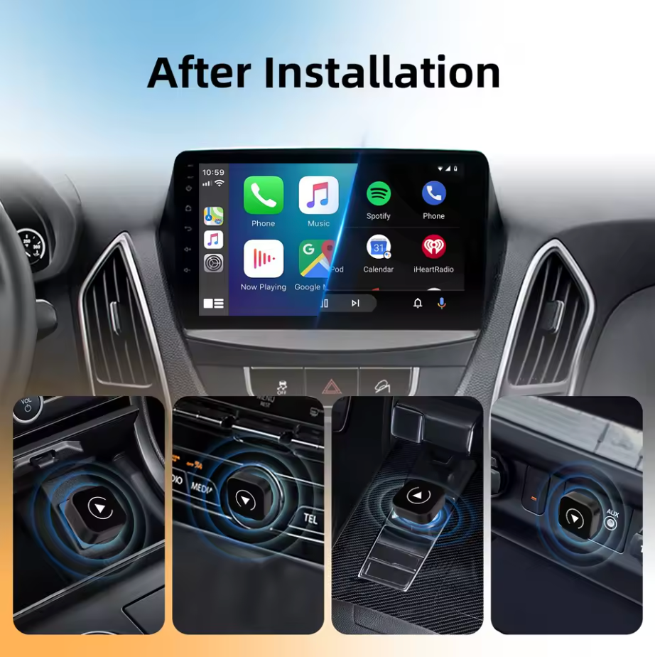 Connect it to your car’s USB, wait a moment, and CarPlay loads wirelessly.